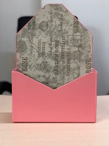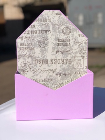 Картонная коробка для цветов в форме конверта . Цвет: Розовый .Розница 400 рублей .