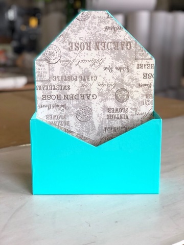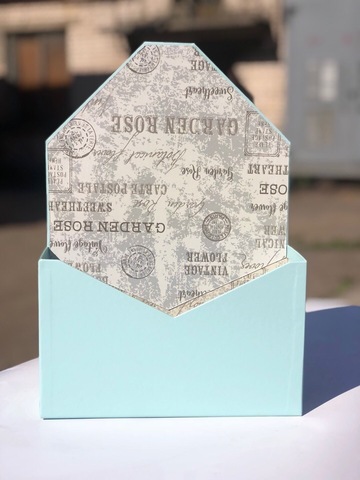 Картонная коробка для цветов в форме конверта . Цвет: Тиффани. Розница 400 рублей .