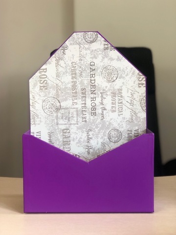 Картонная коробка для цветов в форме конверта . Цвет: фиолетовый .Розница 400 рублей .
